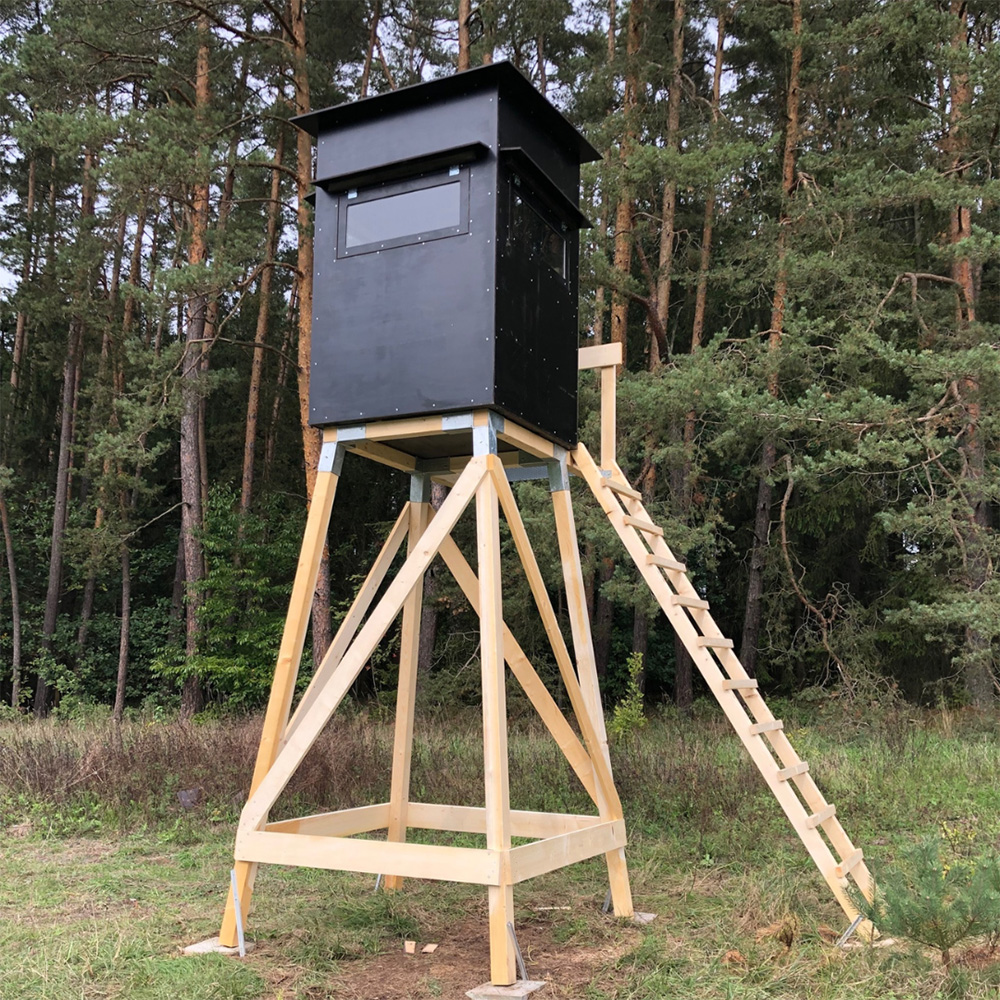 Unsere Kanzelböcke bieten eine stabile Plattform und sind so konstruiert, dass sie Jäger vor Bodennässe und kleinen Tieren schützen. Regelmäßige Inspektionen und Wartung sind wichtig, um die Sicherheit zu gewährleisten.