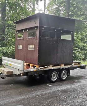 Entscheidend ist ein stabiler, transporttauglicher Bausatz, der sich sicher und dauerhaft auf einem Anhänger befestigen lässt. Unsere Jagdkanzel – wahlweise in Fichte oder Siebdruck-Ausführung – bringt dafür die idealen Voraussetzungen mit: robuste Wand- und Bodenplatten, kompakte Außenmaße und eine stabile Bauweise, die auch beim Fahren nicht ins Wanken gerät. Ebenso eignet sich die Schlafkanzel für den mobilen Einsatz – besonders bei längeren Nachtansitzen auf Schwarzwild oder Fuchs.