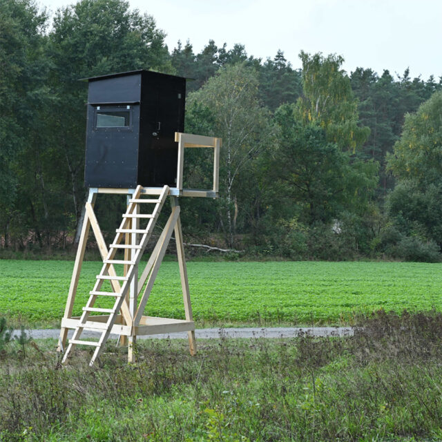 Es gibt sie als Boden- und als Hochsitzvariante. Erstere wird direkt auf den Boden gestellt, punktet mit Stabilität, einfachem Aufbau und ist ideal für Reviere mit ebenem Gelände. Deutlich vorteilhafter ist jedoch die Hochsitzkanzel, die auf Stelzen, Gerüsten oder dem passenden Kanzelbock montiert wird und einen besseren Überblick über das Revier bietet. Je nach Bedarf sind Hochsitze meist in verschiedenen Höhen erhältlich und eignen sich ideal für Felder und Waldränder. Hier ist eine erhöhte Sicht oft notwendig, da dichtes Geäst oder hohe Gräser das Wild verdecken können.